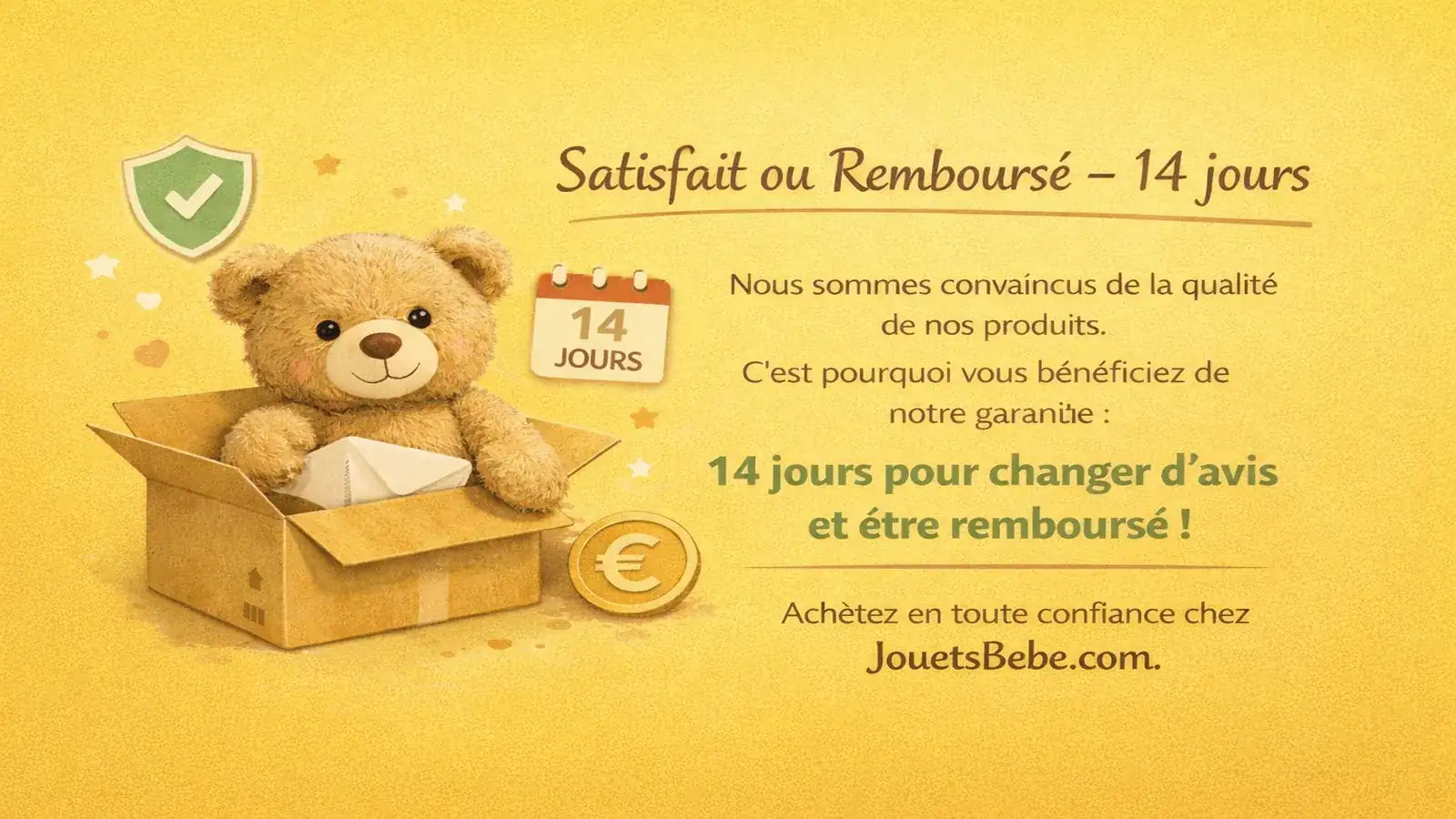 Chez JouetsBebe.com, nous sélectionnons des jouets Montessori, jouets éducatifs en bois et jeux d’éveil, veilleuses, peluches adaptés aux bébés et jeunes enfants. Nos produits favorisent la motricité, l’autonomie et le développement sensoriel, tout en respectant des matériaux naturels et sûrs.
